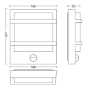 Petronia er en enkel væglampe med indbygget bevægelses sensor og integreret LED lyskilde. Væglampen er fremstillet i aluminium i højeste kvalitet. Det giver lampen et flot og holdbart design. Med den indbyggede sensor er væglampen perfekt at have siddende ved siden af sin hoveddør, så du har lys når du skal låse dig ind eller ud.