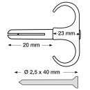 400 stk Plugs Clips Dobbel PC-D 18-22, 2,5 x 45 mm, hvid (40)