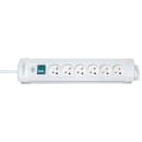 3 meter forlængerledning med stikprop, monteret på stikdåse med 6 runde stikproppe med jord. Stikdåsen har afbryder.