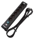 3 meter forlængerledning med stikprop, monteret på stikdåse med 6 runde stikproppe med jord. Stikdåsen har afbryder.