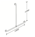 Håndgrebet er udformet som et omvendt T, hvor den lodrette stang med fordel kan anvendes som brusestang ved påsætning af en Pressalit Care bruseholder.