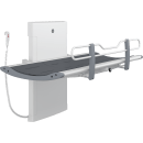 Den svagt buede form i PUR skum og indstillelige nakkestøtte sørger for optimal komfort under badet, mens sengehestens sænkede midterdel giver hjælperen en bedre adgang til brugeren, da det nemt kan klappes op og ned med en enkelt hånd.