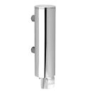 Stilren sæbedispenser til montering på væg fra danske Pressalit. Produceret af rustfrit stål og monteringsindsatse af messing.