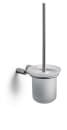 Stilren toiletbørste til montering på væg fra danske Pressalit. Børsteholderen er af glas, beslag og holder i rustfrit stål.