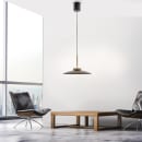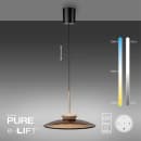 Pure Moon elegant pendel let bruntonet ovalt glas og detaljer i champagne farvet mat metal. Lampen leveres med vores E-Lift system , der via den medfølgende fjernbetjening kan få lampen til at køre via den indbyggede motor i lofbaldakinen i højden fra 600 til 2400 mm. Fjernbetjeningen kan desunden tænde/sdlukke lapemn - skrue op og ned for lysstyrken samt ændre i farvetemperatureren fra 2700 kelvin op til 5000 kelvin.. Lampen har en diameter på 500 mm og lyser med 2 led lyskilder en op og en ned med op til 8 / 10 watt ved 800 / 1100 lumen og 3000 Kelvin. 10 års garanti . Farve Tonet brun og champagne. Ra+90 giver et varmt og naturligt lys.