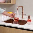Fusion Square køkkenarmaturet fra Quooker fås i flere forskellige farver, der alle, på hver sin måde, komplementerer det smukke designsprog og giver karakter og stemning til både klassiske og moderne køkkener. Rose Copper overfladen tager inspiration fra kobber og tilføjer et hint af lyserød, hvilket tilfører køkkenet en varm, tidløs glød, der komplementerer en lys skandinavisk farveskala.
