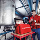 ROFROST Turbo R290 arbejder med kølemidlet R290 Miljøvenlig. Dette giver installatører mulighed for at fryse varmerør og vandrør på en fremtidssikret, miljøvenlig og omkostningsbesparende måde. ROFROST-appen viser installatører den mindste frysetid, så de kan arbejde sikkert og økonomisk. Takket være fleksible køleslanger og slanke køletænger er det også muligt at arbejde i trange rum.