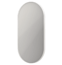 Det smukke Ink spejl fra Sanibell har et let og og elegant udtryk med sin ovale form, som fuldendes af den slanke hvide aluminiums ramme, der giver rummet en helt anden karakter end med et mere traditionelt spejl.