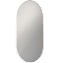 Det smukke Ink spejl fra Sanibell har et let og og elegant udtryk med sin ovale form, som fuldendes af den slanke hvide aluminiums ramme, der giver rummet en helt anden karakter end med et mere traditionelt spejl.