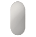 Det smukke dugfri Ink spejl fra Sanibell har et let og og elegant udtryk med sin ovale form, som fuldendes af den slanke hvide aluminiums ramme, der giver rummet en helt anden karakter end med et mere traditionelt spejl.