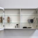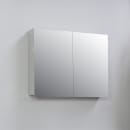 Sanibell Online spejlskab med plads til det du lige har brug for foran spejlet. Skabet har 2 låger med spejlglas på begge sider af lågerne og skabet er indrettet med 4 glashylder.