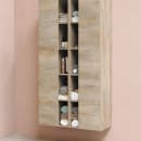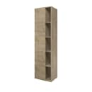 Det detaljerede højskab fra Sanibell har en smuk varm farve kaldet Rå Eg, som er med til at fuldende skabet, der bidrager til et personligt og harmonisk udtryk på badeværelset.