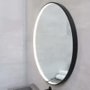 Dette spejl har et enkelt og stilrent design, som gør at det passer ind i de fleste badeværelser, moderne såvel som traditionelle. Spejlet har en mat sort aluminiumramme, der skaber en flot kontrast på f.eks. en hvid væg. Spejlet har inbygget LED-belysning, vsom kan justeres i temperatur fra varmt til koldt hvidt lys. Lyset er desuden dæmpbart, hvilket betyder, at det kan justeres i styrke.