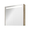 Dette spejlskab er med trælĂ¥ge med spejl pĂ¥ ydersiden og integreret LED-belysning. Et spejl med LED-belysning har mange fordele; det giver et smukt, blødt lys pĂ¥ dit badeværelse og er ideelt til at sætte hĂ¥r eller make-up.