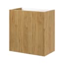 Det lille underskab er unikt til små badeværelser eller gæstetoilettet, hvor pladsen kan være trang, og der der ønskes mere bevægelighed, uden at gå på kompromis med design og funktionalitet. Overfladen er lamineret træ.