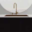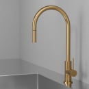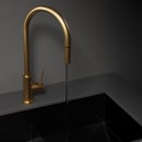 Det tidløse og smukke køkkenarmatur Accent fra Scandtap er fremstillet i børstet rustfrit stål, der efterfølgende er belagt med en slidstærk PVD overflade i børstet messing.