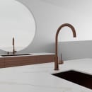 Det tidløse og smukke køkkenarmatur Equip fra Scandtap er fremstillet i børstet rustfrit stål, der efterfølgende er belagt med en slidstærk PVD overflade i børstet kobber.