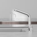 Tuden er svingbar op til 360°, og kan fastlåses i både 0° og 110° alt efter, hvad du foretrækker. Den svingbare funktion giver mere arbejdsplads ved vasken, ligesom rengøringen også lettes.