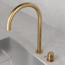 Det moderne og minimalistiske køkkenarmatur fra Scandtap er fremstillet i rustfrit stål med en guldfarvet slidstærk PVD overfladebehandling.