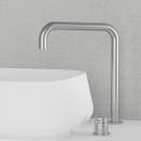 Det moderne og minimalistiske køkkenarmatur Harmonized K2 Square fra Scandtap er fremstillet i børstet rustfrit stål, og består af en separat tud og greb, som er beregnet til bordmontering i 2 huller a Ø35 mm.