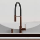 Pro vandhanen er fremstillet i rustfrit stål, og belagt med en slidstærk pvd overflade, som beskytter og bibeholder den børstede kobber finish. Det industrielle udtryk passer perfekt ind i køkkener, hvor både æstetik og funktionalitet er afgørende.