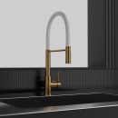 Pro vandhanen er fremstillet i rustfrit stål, og belagt med en slidstærk pvd overflade, som beskytter og bibeholder den børstede messing finish. Det industrielle udtryk passer perfekt ind i køkkener, hvor både æstetik og funktionalitet er afgørende.