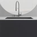 Det høje design er ikke bare for syns skyld. Det giver mere luft omkring vasken, så du får et større og mere rummeligt arbejdsområde. Den ekstra plads gør det nemt at håndtere store gryder og høje vaser. Den udskiftelige slange i mathvid og matsort gør det nemt at justere stilen efter dit køkken, mens den industrielle form giver kant og karakter til rummet.