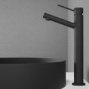 Scandtap Rare R i farven Coal bringer mat antracit ind i rummet på en måde, der føles både rolig og markant. Den runde form og mørke nuance giver en afdæmpet dramatik, som passer perfekt til moderne badeværelser.