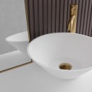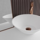 Det håndlavede design giver dig en vask med karakter og finesse. Den runde skålform skaber balance i rummet og gør vasken til et naturligt fokuspunkt – hvad enten du vælger at kombinere den med et armatur i en varm metalfarve, eller holder stilen enkel med et armatur i en køligere nuance.