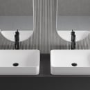 Den kvadratiske form med afrundede hjĂžrner giver et roligt og moderne udtryk, der skaber balance i rummet og gĂžr vasken til et naturligt fokuspunkt â hvad enten du vĂŠlger at kombinere den med et armatur i en varm metalfarve, eller holder stilen enkel med et armatur i en kĂžligere nuance.