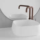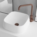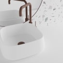 Den kvadratiske form med afrundede hjørner giver et roligt og moderne udtryk, der skaber balance i rummet og gør vasken til et naturligt fokuspunkt – hvad enten du vælger at kombinere den med et armatur i en varm metalfarve, eller holder stilen enkel med et armatur i en køligere nuance.