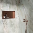 Stilfuld brusehylde i børstet kobber look til moderne badeværelser