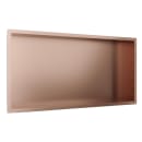 Med sine mål på 63x33 cm passer hylden perfekt ind i de fleste brusenicher og tilfører et raffineret præg. Den let hældende bund sikrer, at vandet løber af, så dine produkter altid står tørt og pænt. Hylden er fremstillet i rustfrit stål med en børstet kobberfarvet PVD-overflade, som både beskytter og fremhæver det elegante look.