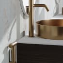 Det strømlinede formsprog trækker tråde til skandinavisk indretning med vægt på æstetik og ro i hverdagen, mens højden skaber et dynamisk blikfang, og bidrager til et gennemført og æstetisk smukt udtryk på dit badeværelse.