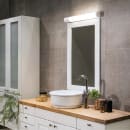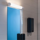 Flot og enkelt spejlarmatur der giver et godt og farveægte lys ved dit spejl. Det er produceret i aluminium med en afskærmning i akryl. Det kan dæmpes med fasedæmp. Leveres med indbygget lyskilde og kan monteres med både skjult eller synligt kabel.