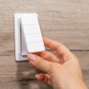 Fjernbetjeningen vejer kun 21 gram og er lavet i hvid plast, der passer ind overalt. Den magnetiske bagside og medfølgende holder gør det nemt at flytte den rundt. Du kan også bruge den i beacon-tilstand for at udløse automatiseringer, når du kommer hjem. Perfekt til dig, der ønsker frihed og fleksibilitet i hverdagen.