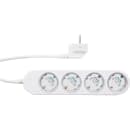 Med Shelly Gen4 stikdåse i hvid får du en smart og fleksibel løsning til styring af op til fire enheder, uanset om det er tv, computer eller opladere, der skal have strøm. Hver udgang har individuel styring og energiovervågning, så du altid har overblik over dit forbrug og let kan undgå unødvendig standby-strøm.