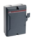 Sidebetjent sikkerhedsafbrydere i lysegrå boks og dække/håndtag i gul, kunstofkapslede