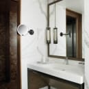 Montér spejlet direkte på væggen og træk teleskoparmen ud, når du har brug for at komme tættere på dit spejl. Spejlet er let og glidende at justere, så der er luksus selv i de små detaljer.
