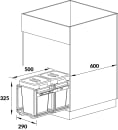 Det sorte affaldssystem består af et smart udtrækningsstativ, som monteres i et skab på min 45 cm. Systemet monteres på en skinne i bunden og på en skinne på skabsvæggen for at opnå en stabil løsning.
