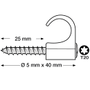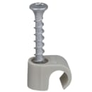 Ledningsholder med skrue til rund ledning. Slagfast elastisk Polypropylene - Halogenfri og UV stabiliseret. Skrue: Kraftig Corrosion Class C4 skrue 5 x 33 mm med Torx20 kærv – montering både indendørs og udendørs.