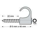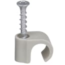 Ledningsholder med skrue til rund ledning. Slagfast elastisk Polypropylene - Halogenfri og UV stabiliseret. Skrue: Kraftig Corrosion Class C4 skrue 5 x 40 mm med Torx20 kærv – montering både indendørs og udendørs.