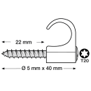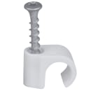 Ledningsholder med skrue til rund ledning. Slagfast elastisk Polypropylene - Halogenfri og UV stabiliseret. Skrue: Kraftig Corrosion Class C4 skrue 5 x 40 mm med Torx20 kærv – montering både indendørs og udendørs.