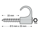 Ledningsholder med skrue til rund ledning. Slagfast elastisk Polypropylene - Halogenfri og UV stabiliseret. Skrue: Kraftig Corrosion Class C4 skrue 5 x 33 mm med Torx20 kærv – montering både indendørs og udendørs.
