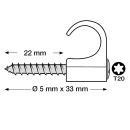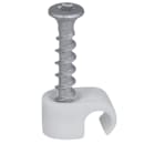 Ledningsholder med skrue til rund ledning. Slagfast elastisk Polypropylene - Halogenfri og UV stabiliseret. Skrue: Kraftig Corrosion Class C4 skrue 5 x 33 mm med Torx20 kærv – montering både indendørs og udendørs.