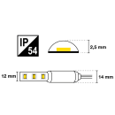 LED båndet leveres med dobbeltsidet 3 meter tape, hvilket gør montering hurtig og enkel. Desuden har båndet en IP54-tæthedsgrad, hvilket betyder, at den kan modstå både støv og vandstænk. Med sin IP54, er produktet ideelt til brug i både indendørs og lettere udendørs installationer, såsom i garager, køkkener eller badeværelser, hvor det kan udsættes for fugt og støv.