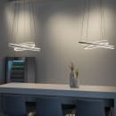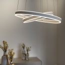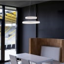 One Double fra SLV er en iøjnefaldende pendel med to svævende LED-ringe i forskellig størrelse og højde. Den lyser både opad og nedad og skaber en stemningsfuld og balanceret belysning – perfekt over spisebordet. Det moderne design og den justerbare ophængning gør lampen til et fleksibelt midtpunkt i rummet.