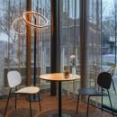 Skulpturelt og svævende design med vipbart lampehoved og solid base – både stilfuldt og stabilt i alle miljøer.