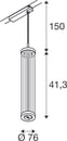 Integreret i et 1-faset skinnesystem med justerbar højde op til 150 cm. Nem dæmpning via f.eks. LK Fuga LED Dimmer 180 Touch eller Busch Jäger 6523U.