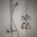 Med denne krom brusehylde til hjørnet får du en praktisk og stilren løsning, der giver plads til både shampoo, balsam og sæbe – uden at gå på kompromis med udtrykket i dit badeværelse. Den blanke overflade og det enkle design gør det let at holde styr på dine produkter, så du får en overskuelig og indbydende bruseniche.